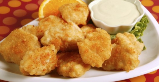 Cut pork into small chunks. In a large resealable plastic bag, combine marmalade or jam, soy sauce, ginger, garlic and the pork pieces. Close bag and gently massage mixture into pork. Refrigerate for 1 hour or more. Meanwhile, in a separate resealable plastic bag, add the corn flakes; close top and crush until fine crumbs form (kids love to help with this task!). Remove pork from marinade; discard marinade. Coat pork in the crushed cereal crumbs and place on a foil-lined baking tray coated with cooking spray. Bake at 375ºF/190ºC for 10 minutes, turn over and bake for another 10-15 minutes or until no pink remains. Serve with plum sauce or ranch dip, and raw veggies.