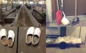 brushes etc are provided for each section. Injections are kept to a minimum (as this is a potential route for infection), with the youngest pigs being treated first and sick litters last.