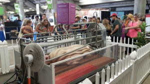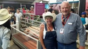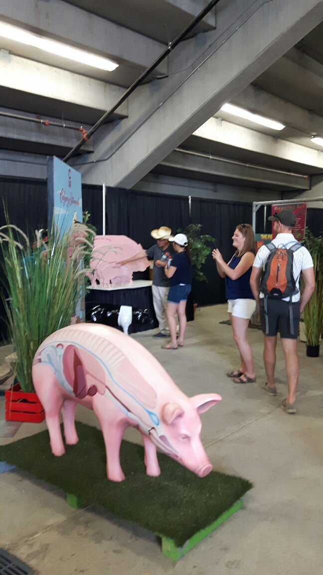 at the Calgary Stampede to answer questions. This is a great opportunity to show “city slickers” the ins and outs of our business. Adults and children alike could be heard commenting on the live sow and piglets and the “teenagers” (weaners) as the sign put it. I overheard one guy laugh and say “that will do pig that will do..”. So yes a great opportunity to connect and share why we do things the way we do.