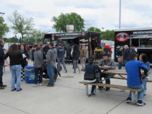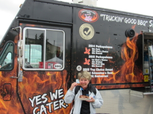There were 37 KCBS BBQ Competition Teams on site, food and retail vendors plus a food stage where I watched Elyse Chatterton tie sausages at a amazing pace.