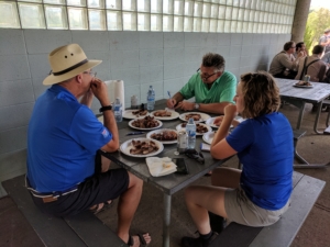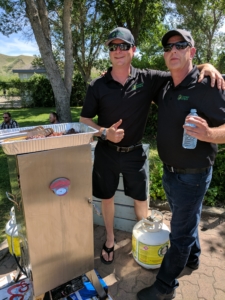 breeze cooling things down. Attendance topped 190 including Hypor customers from across Alberta, Saskatchewan, and Montana. Hypor technical support people from as far away as Ontario and other industry people from across the prairies also joined in – including special guests, Paul and Ryan Riese. For many, the highlight of the afternoon was the BBQ Battle – eight animal nutrition companies competed for the title of Best Pork Ribs in Alberta (as judged by a panel of three taste testers – Ralph Miller, Paul Riese, and Emily Miller). In the end the team from