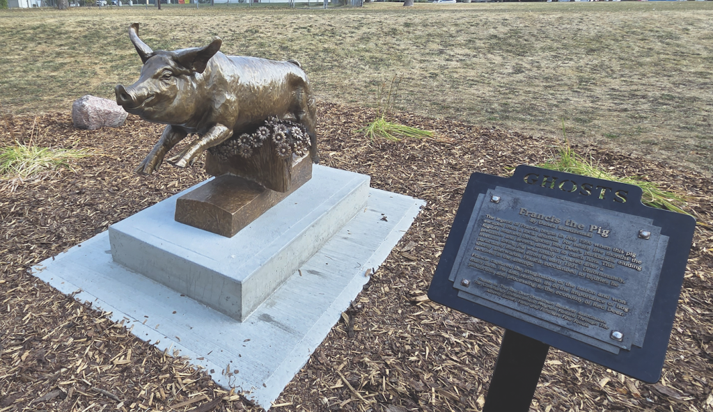 Francis the Pig was immortalized and unveiled in 1998 as part of Red Deer’s ghost sculpture collection, a series of public statues depicting stories from Red Deer’s history.
